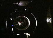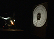 When this handmade film is screened, the lens of the projector is off. It is a 16mm magnetic sound film-loop, “pinholed” frame by frame where every hole is made in a different place within each frame in order to produce an animated image of the lamp in the projector on a nearby screen. This is not a common film that bears an image of the past on its emulsion, but the projected image of a present object-event distorted by film in real-time.